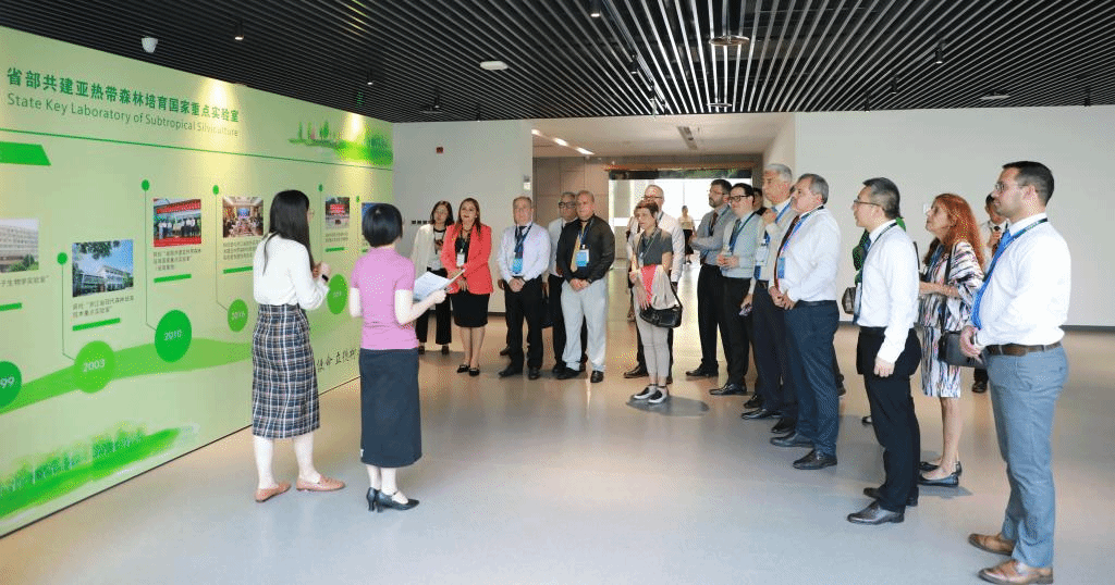 代表團(tuán)還參觀了亞熱帶森林培育國(guó)家重點(diǎn)實(shí)驗(yàn)、竹子展覽館。研究生院、科技處、國(guó)際處、環(huán)資院、化材學(xué)院、園林學(xué)院、國(guó)教學(xué)院、竹子研究院等相關(guān)單位負(fù)責(zé)人參加了會(huì)見(jiàn)和交流。