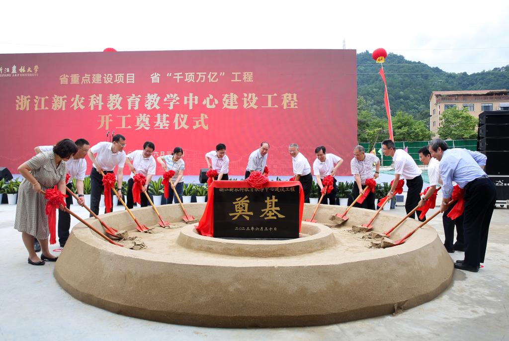6月30日,在全校深入開展學習貫徹習近平新時代中國特色社會主義思想主題教育、喜迎中國共產黨成立102周年之際,學校隆重舉行浙江新農科教育教學中心建設工程開工奠基儀式。