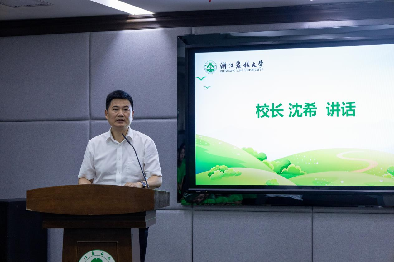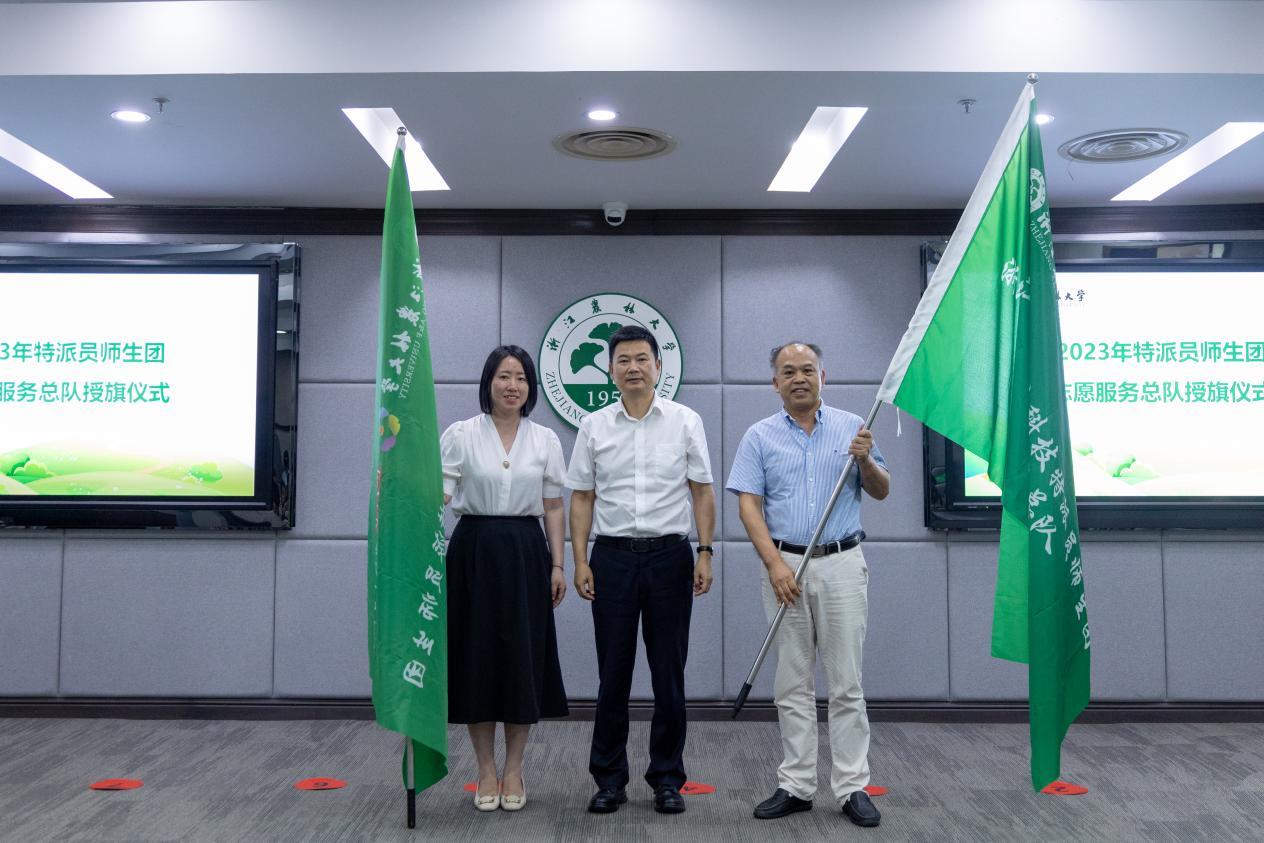 沈希指出,今年是浙江省推行科技特派員制度20周年。日前,習近平總書記給我省科技特派員代表回信,肯定廣大科技特派員20年以來在之江大地田間地頭取得的累累碩果。我校一直是科技特派員制度的堅定踐行者,打造了“一根科技竹、兩顆富民果、三幅美麗圖、百名科技特派員”的“浙農林大模式”。特派員師生團志愿服務隊的成立,是科技特派員制度與人才培養相結合的重要舉措,是科技特派員制度內涵的再提升、外延的再拓展。今年學校在原有科技特派員師生團基礎上,首創了文化特派員師生團志愿服務隊,更加全面支撐了鄉村五大振興。
