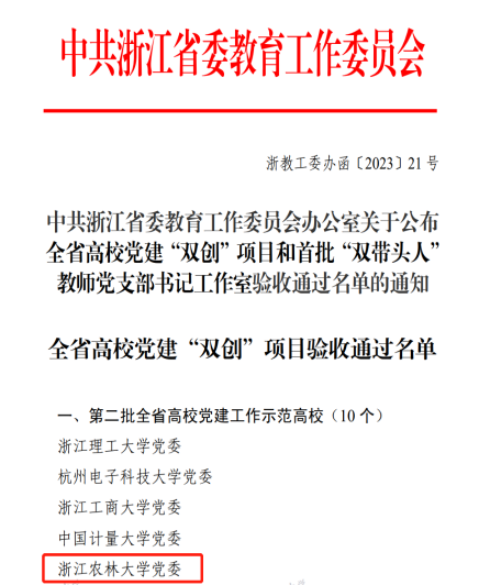 浙江農林大學黨委通過全省高校黨建工作“示范高校”驗收