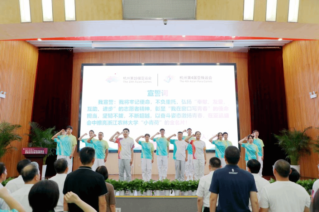 同心迎亞運,青春志愿行!我校826名“小青荷”將拿出“決戰決勝”的姿態、保持“至臻至善”的心態、提振“同心同力”的狀態,在亞運盛會中擦亮浙江農林大學“小青荷”的金名片,助力講好中國故事、亞運故事,向亞洲和全世界展示新時代中國青年昂揚的青春風采!