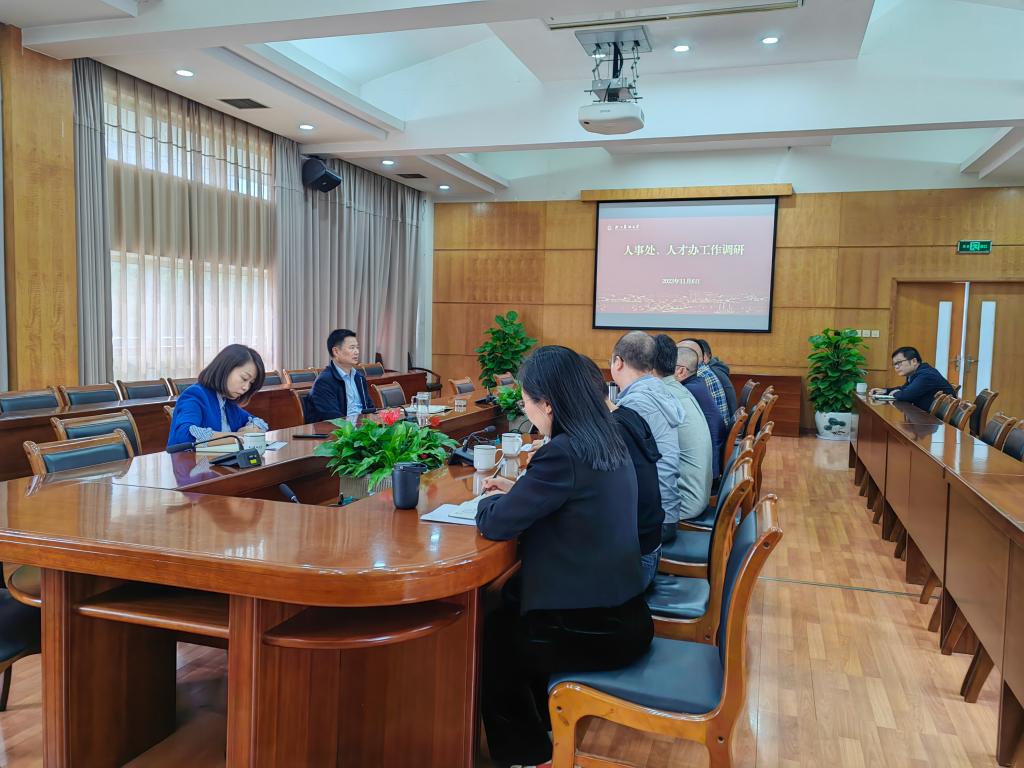 11月6日,校長沈希到人才辦、人事處調研指導工作,認真聽取工作匯報,對近年來學校人才、人事工作取得的成績給予肯定,并結合學校高水平大學建設目標,對進一步做好人才、人事工作提出要求。
