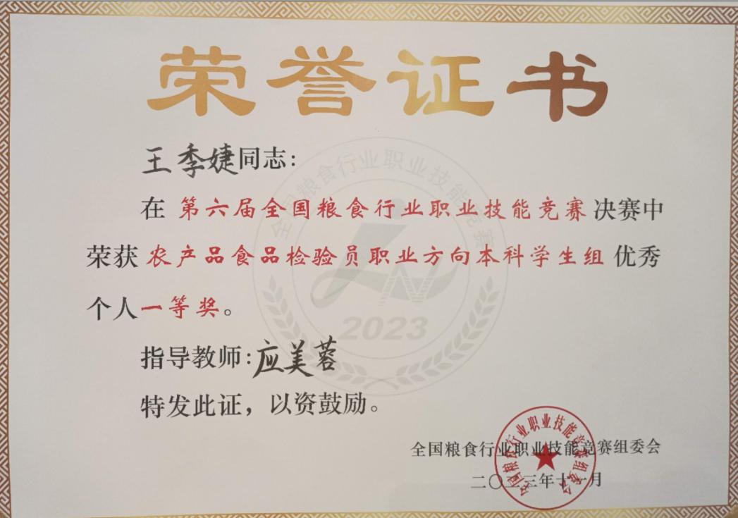 我校學(xué)子獲全國糧食行業(yè)職業(yè)技能競賽一等獎(jiǎng)