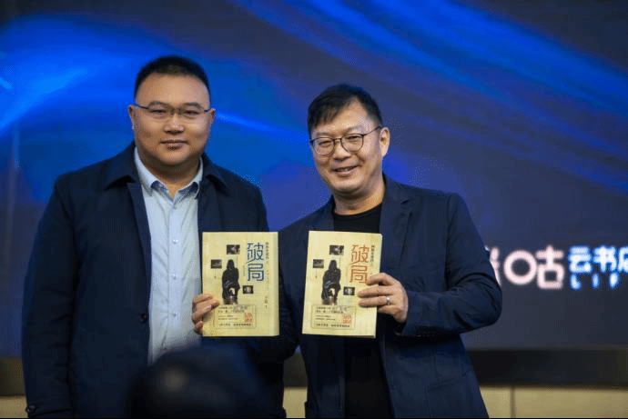 郭羽與馬李永共同揭幕新書(shū),開(kāi)啟新書(shū)發(fā)布儀式。