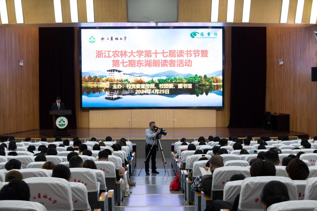 春光作伴好讀書,書香氤氳浙農林。4月25日下午,學校第十七屆讀書節暨第七期東湖朗讀者開幕式在圖書館第一報告廳舉行。校黨委副書記施美紅出席并致辭,主辦單位負責人和各學院師生代表近五百人參加。
