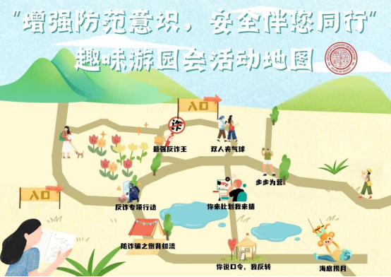 活動規則:準備與詐騙有關的短語或標語小紙條,兩兩pk,或兩兩成組組間pk,一人順著讀,一人倒著背,2分鐘內說對多的小組獲勝.失敗方需要回答問題才可以獲得獎品。獲勝方直接獲得獎品。
