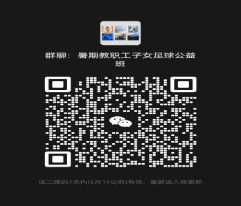 請6月20日前掃碼入群(教職工子女暑期足球公益班微信群二維碼附后)。入群后填報(bào)孩子姓名、年齡、家長聯(lián)系方式等信息。最終參加培訓(xùn)名單將在群里公布。
