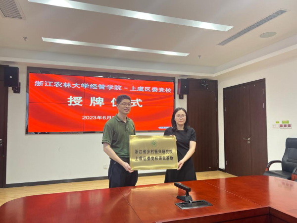 隨后,學院和研究院負責人與上虞區委黨校負責人舉行了“浙江省鄉村振興研究院上虞區委黨校研究基地”和“經濟管理學院上虞區委黨校研究生工作站”授牌儀式,并為校外實踐導師頒發了聘書。雙方還就具體合作內容和工作推進機制等方面進行了深入溝通交流,初步達成了一致意見。