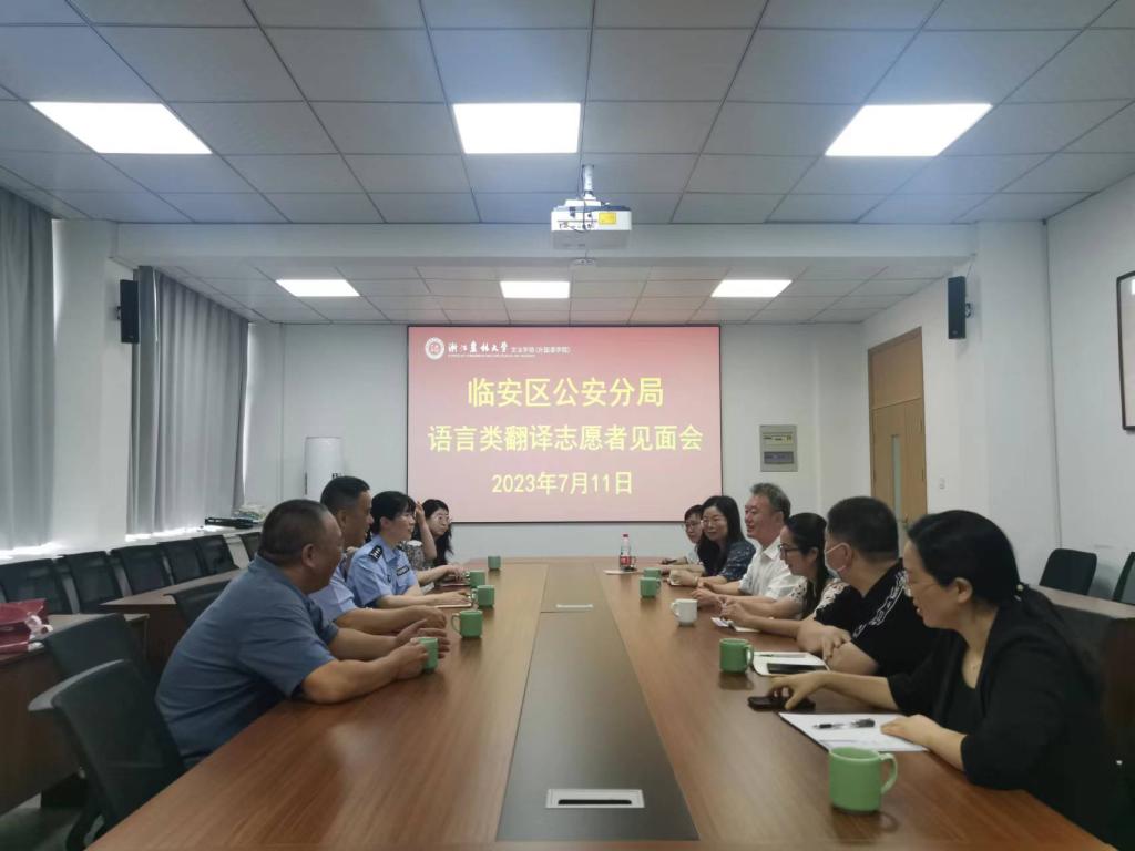 臨安區公安分局服務亞運語言翻譯志愿者見面會在我校文法學院召開