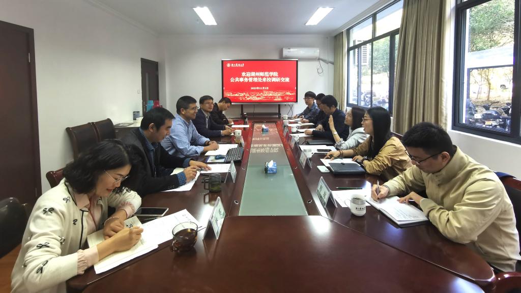 11月2日,湖州師范學院公共事務管理處夏秀琴處長一行來校調研交流。公管處處長陳培金主持座談交流會,公管處、采購中心相關負責人陪同交流。