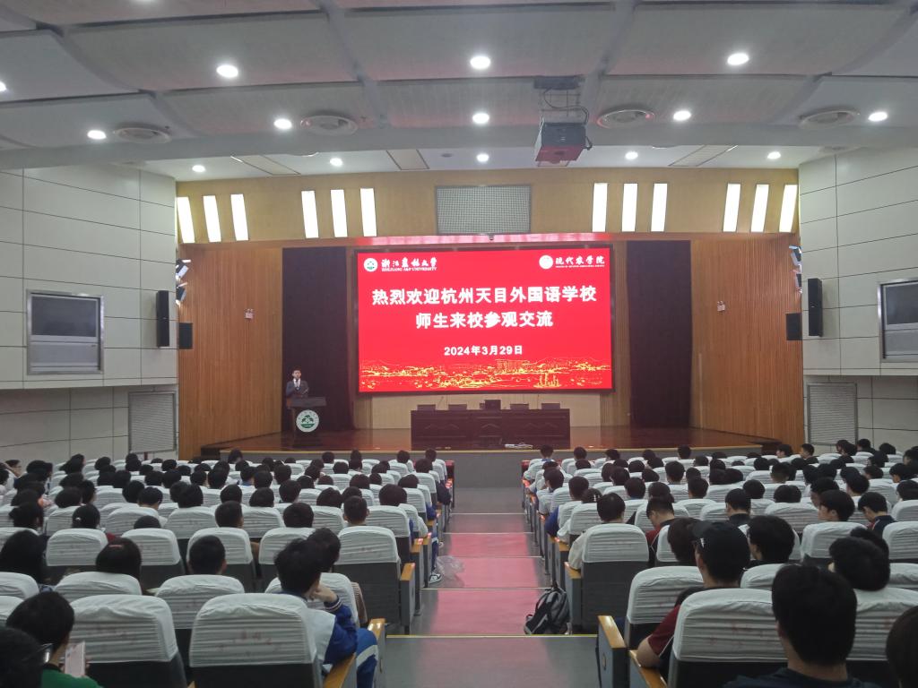 3月29日上午,杭州天目外國語學校700余名師生來校參觀交流。農學院學生工作負責人,學生辦輔導員及師生代表參加活動。