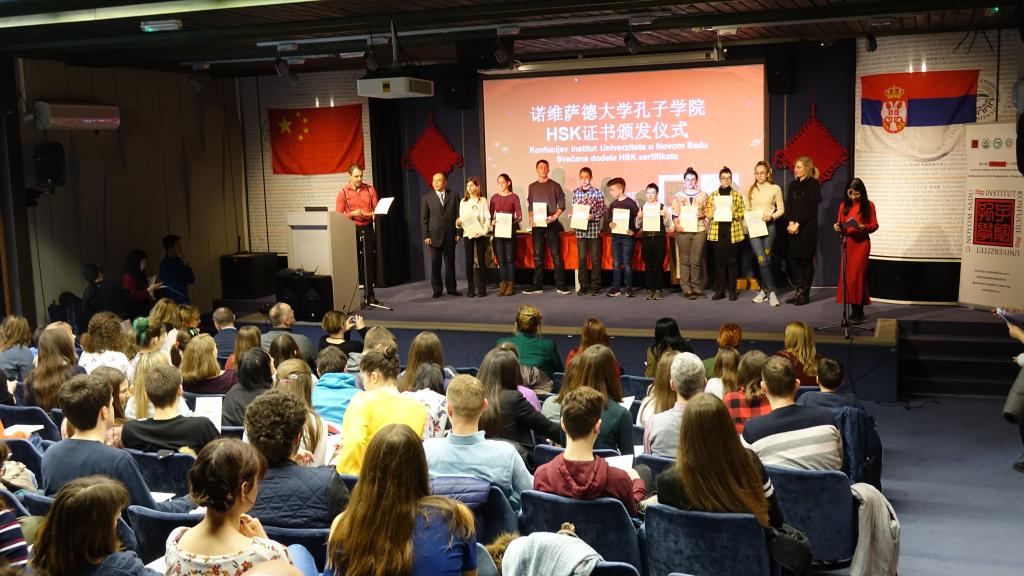 當(dāng)?shù)貢r間3月17日,諾維薩德大學(xué)孔子學(xué)院舉辦首次HSK考試頒獎儀式。活動邀請了諾大孔院7個教學(xué)點的負(fù)責(zé)人和學(xué)生家長,共二百余人參加儀式,現(xiàn)場氣氛熱烈。