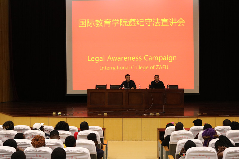 國際學院還于當天下午舉行了2018年春季學期入學教育以及國際生遵紀守法宣講會。趙有華結合所涉及的法律法規,針對酗酒滋事、酒后飆車、無證駕駛等國際生中存在的嚴重違紀違法行為進行了重點解讀。國際生管理辦公室相關人員也參加此次宣講活動,并就國際學生的日常管理進行了詳細講解。