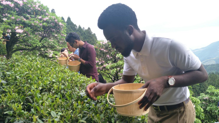 天臺縣石梁鎮是浙江省教育廳的結對幫扶鄉鎮,也是中國茶祖之地,葛玄茗圃的茶葉栽培歷史有1500多年。在文法學院蘇祝成教授的指導下,國際生們來到茶園采茶、品茶,同時觀看紅茶的制作過程以及茶道表演,借助禮儀、通過茶道讓外國友人感受到了中國悠久的茶文化。