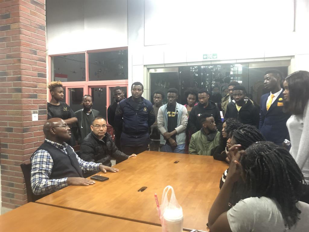 Vincent C.Mwewa視察了國(guó)際生宿舍樓,并與部分贊比亞籍國(guó)際生進(jìn)行了座談。Mwewa勉勵(lì)廣大贊比亞學(xué)生嚴(yán)格遵守中國(guó)的法律法規(guī)和學(xué)校的規(guī)章制度,努力學(xué)習(xí)漢語(yǔ)和專業(yè)知識(shí),為中贊友誼和合作作出貢獻(xiàn)。