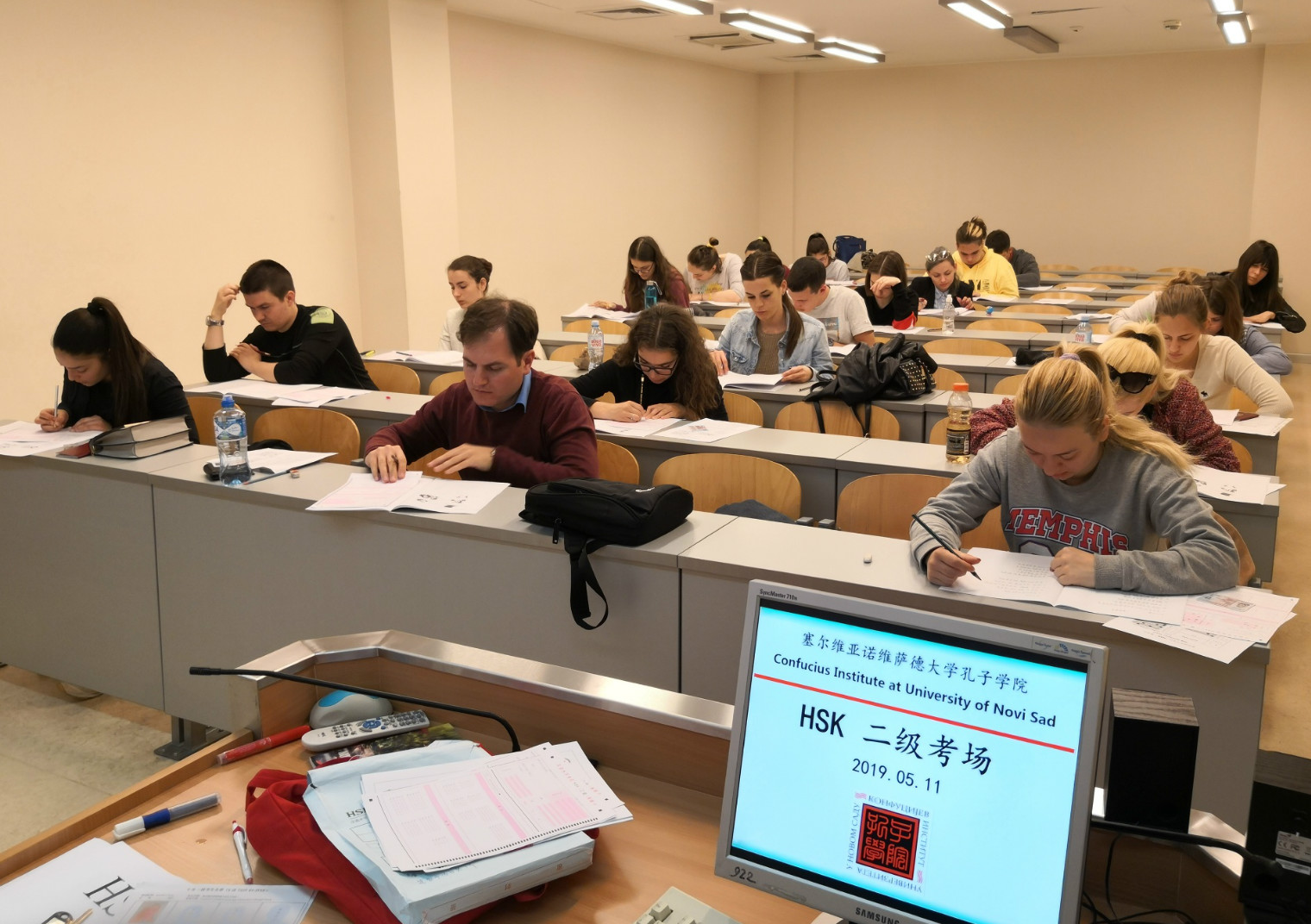 當地時間5月11日,諾維薩德大學孔子學院舉行2019年度第一次漢語水平考試(HSK)。考試等級涵蓋HSK一至五級,167名學生參與,同比增長24.6%。